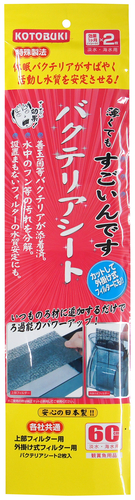 薄くてもすごいんです。休眠バクテリアが素早く活動し、水質を安定させる!・善玉菌等バクテリアが添着済。・水中のフン等の汚れを分解。・設置まもないフィルターの水質安定にも。いつものろ材に追加するだけでろ過能力パワーアップ!安心の日本製。本品は上部フィルター以外のフィルターにもご使用いただける多目的シートです。外掛け式フィルター、外部式フィルターにも適当な大きさにカットしてご使用頂けます。本製品は2枚入りです。バクテリアの効果は1枚で約1ヶ月です。主成分:乳酸菌、酵母菌、枯草菌、酵素など60㎝水槽用/交換マット/上部フィルター用マット