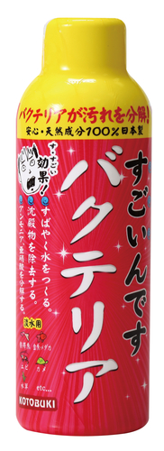 バクテリアが汚れを分解!○有害なアンモニアや亜硝酸を分解、除去し、すばやく水質を安定させます。○水底に沈殿する有機物(残餌、排泄物、枯草など)を分解、除去します。ボトル内に沈殿物が発生される場合がありますが、バクテリアが塊状に形成されたものです。生体に影響はなく、使用上効果が低下する事もございません。ボトルをよく振ってからご使用ください。また、開封後はできるだけ早くご使用いただき、直射日光の当たらない場所に保管してください。水質調整剤/水槽用バクテリア剤