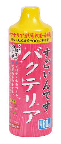 お得用480mlバクテリアが汚れを分解!○有害なアンモニアや亜硝酸を分解、除去し、すばやく水質を安定させます。○水底に沈殿する有機物(残餌、排泄物、枯草など)を分解、除去します。ボトル内に沈殿物が発生される場合がありますが、バクテリアが塊状に形成されたものです。生体に影響はなく、使用上効果が低下する事もございません。ボトルをよく振ってからご使用ください。また、開封後はできるだけ早くご使用いただき、直射日光の当たらない場所に保管してください。水質調整剤/水槽用バクテリア剤
