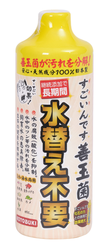 継続添加で長期間水替え不要!善玉菌が汚れを分解!○ヨーグルトでおなじみの乳酸菌等の善玉菌が生産した酵素が水の中でも大活躍!水質悪化の悪玉菌を撃退!水の酸化を抑え、快適な水中環境を実現します!・水の腐敗(酸化)を抑制。・水中のフン等の汚れを分解。・飼育水の悪臭除去。・生体の健康を維持する。水質調整剤炭水・海水両用◆すごいんです化石の力と一緒に使うとより効果的です。