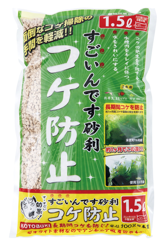 すごいんですシリーズにコケを防止する砂利が新登場!!長期間コケを防ぐ!○あらゆる緑藻類の発生予防にすぐれた効果を発揮します。○飼育水、ガラス面に発生するコケを抑制し、水槽内を美しく保つことができます。○ゼオライト素材による多孔質な網目構造の結晶が、餌や魚のフンなどから出るアンモニアなどの有害な物質を吸着するので、水が浄化され、魚もイキイキ!○多孔質な為、有害なバクテリアのスミカとしても優れています。○軟水化効果と活性炭効果で硬度を低く保ち、脱色、脱臭効果も発揮します。○pHを安定させ、面倒な水質調整の手間を省きます。