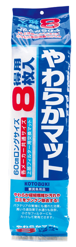 ・上部用マットの定番!!ドンドン使える嬉しい8枚入・各メーカー共通サイズ・60cm上部フィルター用ロングサイズ・やわらか極細繊維が汚れやゴミをグングン除去する・バクテリアの繁殖にも優れた効果。・高いろ過効果で水通りも抜群。・小さなフィルターにもカットして使用できます。60㎝水槽用/交換マット/上部フィルター用マット