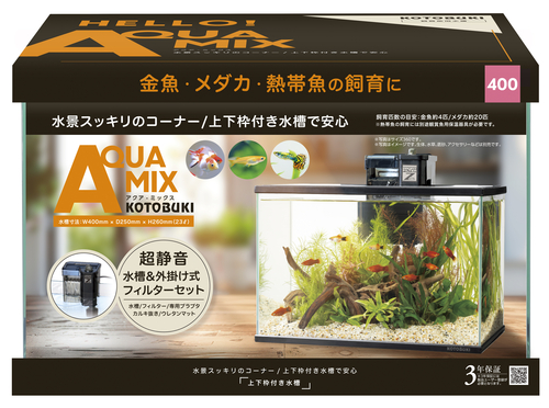 金魚・メダカ・熱帯魚の飼育に(飼育匹数の目安:金魚約4匹/メダカ約20匹)水景スッキリのコーナー/上下枠付き水槽で安心※熱帯魚の飼育には別途観賞魚用保温器具が必要です。観察パーツ付プラブタ*レンズで魚を観察*目盛りで魚の成長を観察*スクレーパーでコケ掃除●別売りのLEDがプラブタの凹みにピッタリフィット!FLAT LED S-USB 300B(別売り)フィルター:プロフィットフィルターZ2540㎝水槽