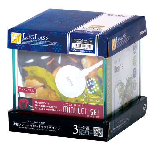 ベタやメダカなど小型魚に最適なミニLEDと小型水槽のセット。※フィルターは別売りです。*LEDライト:ビーンズホワイト