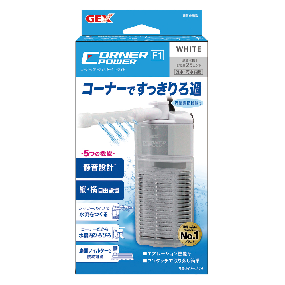 コーナーですっきりろ過&水中モーターで動作音静か。