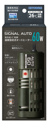 ・高性能電子制御により観賞魚飼育で一般的な水温(26℃)に平均±1.5℃の誤差で自動調節。・保温のON/OFFがひと目でわかるシグナルランプと難燃性カバー付・モスグリーンのカラーは水槽レイアウトに溶け込み目立ちません。・サーマルスイッチと温度ヒューズの二重の安全回路で空焚き事故防止。・横向き・縦向きどちらの設置方法でも安定した保温性能を発揮。※本品はサーモスタット不要ですが、当社サーモスタット(ET-300X、600X、1000X、330XD、620XD)に接続可能となっており、26℃以下の範囲で水温設定ができます。【適応水槽の目安】30㎝水槽 20L以下【製品サイズ】長さ12.5×奥行き4.6×高さ4㎝(ヒーターコード:100㎝)観賞魚用ヒーター/水槽用ヒーター