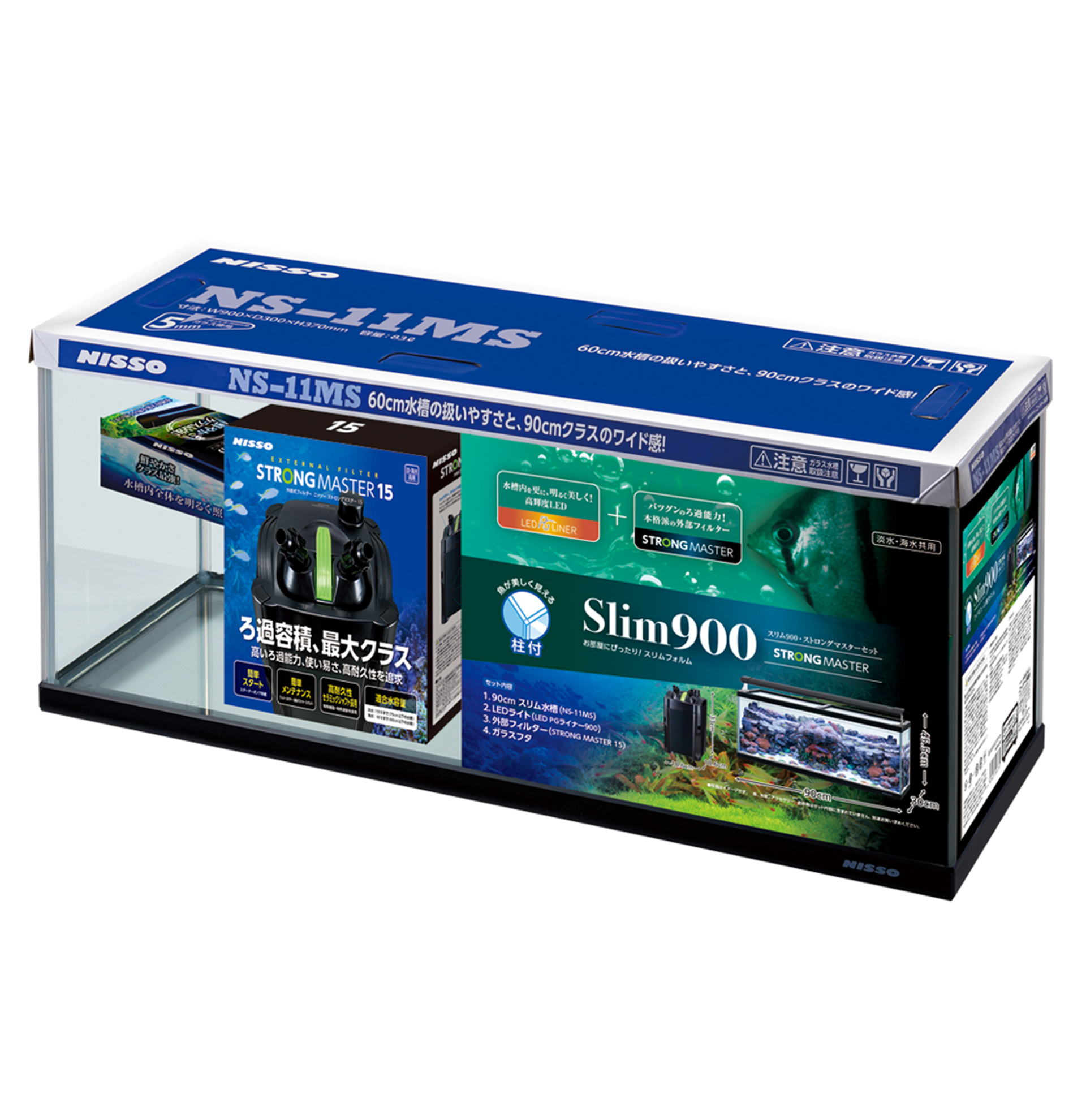 奥行きスリムタイプの水槽に、水槽内を美しく照らす高輝度LEDライトと抜群のろ過能力を誇る本格派外部フィルターをセットにしました。
