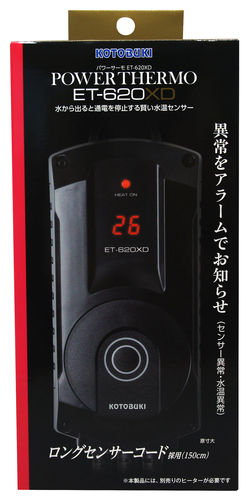 電源コード:約115cmセンサーコード:約150cmヒーター用コンセントコード:約30cmボタン一つで簡単、水温コントロール(デジタル表示で見やすい)ボディに浮かぶLED水温表示。異常をアラームでお知らせ(センサー異常・水温異常)離水センサー付きでセンサーが水から出るとヒーターへの通電を停止し、水に入れると通電を再開します。淡水・海水両用ヒーター容量:2W〜620Wまで対応(ヒーターコンセント3口)制御温度約15℃〜36℃水温表示範囲-9℃〜45℃●パワーのON/OFF状態がLEDランプで一目でわかる。●温度設定がしやすい。操作かんたんプッシュ式設定。●発火事故を未然に防止! 難燃性樹脂プラグ採用。●±1.0℃精度。高感度センサー採用。●器具の誤作動を防ぐ耐ノイズ設計。●1年間保証付(海水:6ヶ月)●本製品には別売りのヒーターが必要です。オートヒーターとの接続OK!本品はオートヒーターとの接続が可能です。万一、オートヒーターのセンサーが故障した場合でも、本製品と接続しておけばオートヒーターの誤作動による事故を防ぐことができ、より安全です。※ご使用になるオートヒーターが約26℃固定型では、本品で制御できる温度は約26℃までです。それ以上の制御はできません。