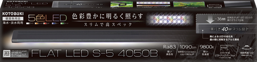 5色LEDで色彩豊かに明るく照らす!スリムで高スペックなLED(ホワイト/オレンジ/レッド/ブルー/グリーン)◆定格消費電力:15W◆明るさ1090ルーメン◆適合水槽:40~50㎝◆奥行き40㎜のスリム設計◆熱によるLEDの劣化を最小限に抑制するアルミ素材◆スライド式リフトアップパーツ付き◆枠付き、フレームレス水槽どちらにも対応アクアリウムライト/LEDライト