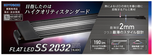 使えば分かる究極の薄さ、明るさ、美しさ。目指したのはハイクオリティスタンダード。放熱性の高いアルミボディを使用した冷却設計により、熱によるLEDの劣化を最小限に抑制。最薄部2㎜クラス最薄のスタイル設計。※デジタルタイマー接続不可。アクアリウムライト/LEDライト