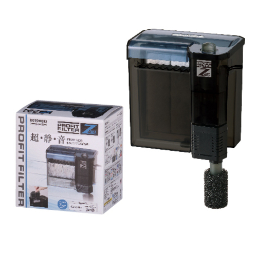 プロフィットフィルターの新発想の静音デザイン!Zシリーズが登場!超静音新形状吐出口と水中ポンプのW静音効果!本体幅:168㎜適応水槽サイズ:小型水槽〜45㎝水槽枠付き水槽使用可:枠幅約20㎜まで7.5〜8.5L/min流量調節可能