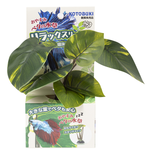 ■リラックスリーフ スタンドタイプ*ベタの寝床・休憩場所に*繁殖時の泡巣づくりに*大きな葉でベタも安心ベタは自然下において水草の陰に隠れて生活しています。本製品は水草を寝床や休憩場所にするベタの習性をいかした人工水草です。休む事で、ベタがリラックスし、ストレスを減らすことにも役立ちます。繁殖時のオスの泡巣作りにも最適です。人工水草/水槽飾り