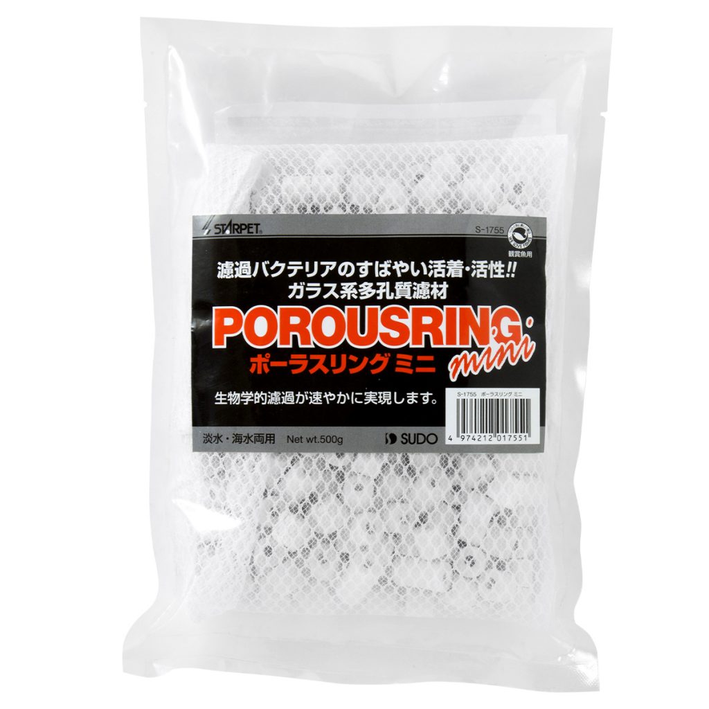 リング形状によりゴミをキャッチしながら水流を確保、濾材全体の目詰まりを防ぎ長期間濾過能力を保ちます。同時に汚れた飼育水を濾材内部に引き込み、濾過バクテリアによって有害なアンモニアなどを分解します。