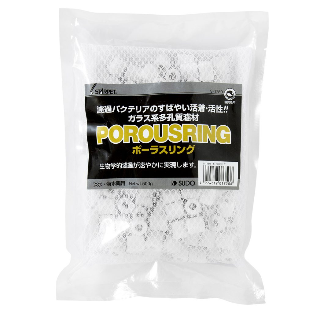 リング形状によりゴミをキャッチしながら水流を確保、濾材全体の目詰まりを防ぎ長期間濾過能力を保ちます。同時に汚れた飼育水を濾材内部に引き込み、濾過バクテリアによって有害なアンモニアなどを分解します。