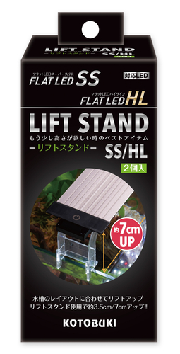 水槽のレイアウトに合わせてLEDのリフトアップする高さを2段階変えることが可能。●枠付き水槽、フレームレス水槽どちらの水槽タイプでも設置OK。●テラリウム水槽にも最適。※水槽サイズ25㎝、35㎝、45㎝は7㎝アップはできません。※フラットLED SS/HL以外のライトには使用できません。