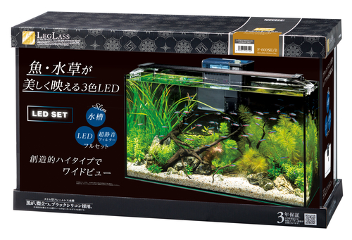 魚・水草が美しく映える3色LED水槽・フィルター・LEDフルセット●60㎝水槽(ブラックシリコン)ハイタイプで奥行きスリムな水槽●フィルター(プロフィットフィルターZ40)●LED(フラットLED SS 600)高輝度LEDライト
