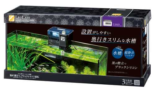 設置がしやすい奥行きスリムな60㎝水槽黒が際立つブラックシリコン水槽&フィルターセット■セットのフィルタープロフィットフィルターZ30(活性炭マット/荒目マット付属)新形状の外掛け式フィルターが優しい水流を作ります。水槽に掛けるだけの簡単設置。手を汚さずにろ材交換。