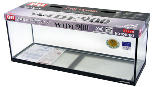 ■900サイズでありながら奥行き高さが扱いやすいワイドビュー水槽■奥行30cm×高さ36cm×幅90cmのワイドサイズ。○水槽重量 12kg