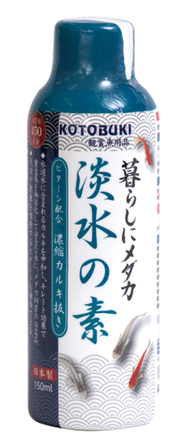 飼育水450L分ビタミン配合 濃縮カルキ抜き150ml 日本製屋内・屋外飼育用本品はメダカ飼育の定期的な水換時に水道水のカルキの中和が出来るだけでなく、健康維持する上で必要なビタミン類(粘膜の生成や代謝の維持など)も同時に補給する事が出来ます。またキレート効果によって水道水に含まれる重金属を無害化しますので、メダカ飼育の必需品としてご使用いただけます。成分:チオ硫酸ナトリウム、キレート剤、ビタミン類(B1、B2、B3、B5、B6、B12、C)メダカの水質調整剤