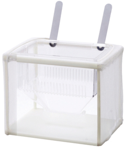 ネットタイプで繁殖と隔離ができる業界初!の安心二重構造式ネット!!安心その1:ネットタイプでありながら、二重構造式だから親魚の産卵と稚魚の安全を同時に守れる!安心その2:卵や稚魚がネット下からつつかれるのを防ぐ底プレート付き!安心その3:卵や稚魚をやさしく守る!ソフトネット採用!安心その4:組み立てカンタン!本体寸法:W160×D125×H133㎜