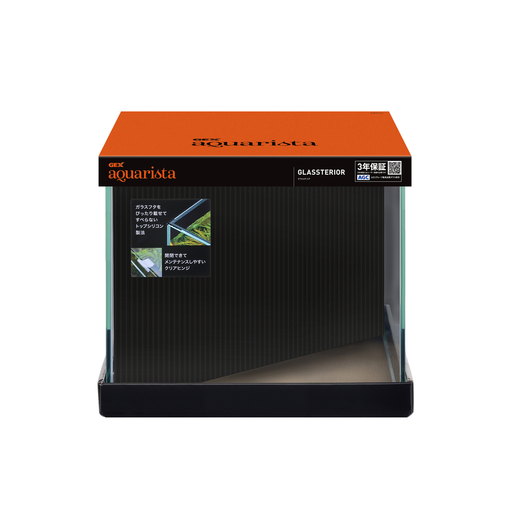 フレームレス水槽の楽しみ方、シルエットが変わる。高さ・奥行にこだわった新サイズ スリムだからこそ、空間に広がる美しさ上部ガラス断面にシリコンを塗布したトップシシリコン加工(TS)を採用。ガラスフタ受けなしでぴったりとガラスフタを載せることができます。フレームレス水槽の一体感を更に高める新構造で、特別なアクアリウムを、あなたの工夫でもっと楽しいものに。・AGCグループ製の高品質ガラスを使用し、独自の「コーナークリア製法」で美しさと強さを両立した、オールガラス水槽・グラステリアだけの「コーナークリア製法」・専用の研磨機により芸術的に磨きこまれたエッジ・熟練の技術とクリアシリコンで作る美しいガラスの貼り合わせ・この透明感で水景がインテリアに溶け込む。・奥行20cmでレイアウトを楽しめる・ガラスフタ、専用クリアヒンジ、クッションマット付・ガラスフタをぴったり載せてすべらないトップシリコン製法・ガラスフタの開閉ができてメンテナンスしやすい専用クリアヒンジ採用で従来よりも小さくなりより空間に溶け込むデザインに