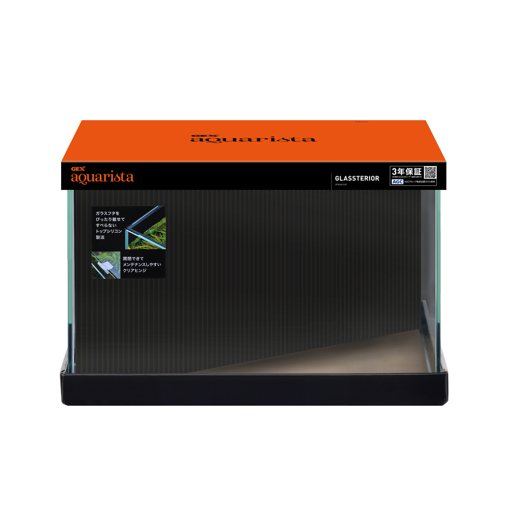 フレームレス水槽の楽しみ方、シルエットが変わる。高さ・奥行にこだわった新サイズ スリムだからこそ、空間に広がる美しさ上部ガラス断面にシリコンを塗布したトップシシリコン加工(TS)を採用。ガラスフタ受けなしでぴったりとガラスフタを載せることができます。フレームレス水槽の一体感を更に高める新構造で、特別なアクアリウムを、あなたの工夫でもっと楽しいものに。・AGCグループ製の高品質ガラスを使用し、独自の「コーナークリア製法」で美しさと強さを両立した、オールガラス水槽・グラステリアだけの「コーナークリア製法」・専用の研磨機により芸術的に磨きこまれたエッジ・熟練の技術とクリアシリコンで作る美しいガラスの貼り合わせ・この透明感で水景がインテリアに溶け込む。・奥行20cmでレイアウトを楽しめる・ガラスフタ、専用クリアヒンジ、クッションマット付・ガラスフタをぴったり載せてすべらないトップシリコン製法・ガラスフタの開閉ができてメンテナンスしやすい専用クリアヒンジ採用で従来よりも小さくなりより空間に溶け込むデザインに