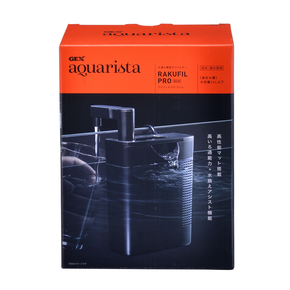 2020年度 グッドデザイン賞受賞!水換えできるろ過フィルター・面倒な水換えがたった3秒でスタートできる、独自構造の水換え機能付きフィルター・水換え排水レバー付きなので、メンテナンス用品を準備せずにスピーディーに水換えがスタートできます。・1週間に1回、飼育水の1/3を目安に水換えをすることで、水質を安定させ魚が住みやすい環境を作ることができます。・3秒で水換えスタート排水レバー・・・持ち上げて水槽の外に下ろすだけで排水スタート・Gaスリムバイオマット:高性能活性炭+ゼオライト+生きたバクテリアのトリプルろ過材と、バクテリアが繁殖するリングろ過材+スポンジマットで、理想的なろ過システムを実現。・スポンジマット採用・・・バクテリアのすみかになるスポンジマット。ろ過材交換時のバクテリア減少を防ぐ。・侵入防止スポンジ採用・・・フィルター背面への魚の入り込みを防止<高いろ過能力>高性能ろ過材+スポンジマットを搭載。ろ過材との接触面が広く、高いろ過能力を実現。<サブフィルターにも最適>90cm水槽の水換え用のサブフィルターとしてもお使いいただけます。<静音設計>水中式静音モーター採用。動作音が気にならないから、快適なアクアリウムライフを楽しめます。<省電力設計>モーターは省電力設計。気になる電気代を抑えて経済的。<簡単スタート>組立不要!コンセントに差すだけで、簡単スタート。<水草育成にも最適>水草育成に必要なCO2を逃さない水中設置式。ご使用方法:水容量60L以下の水槽用として、また水換え用のサブフィルターとしてご使用ください。※水槽内の高さ24.5cm以上(底砂がない場合) 、水槽内の幅23cm以上、枠幅26mm以下の枠付きもしくはフレームレス水槽でご使用ください。GEX aquaristaブランドサイトはこちらから※メーカー出荷は終了しています。
