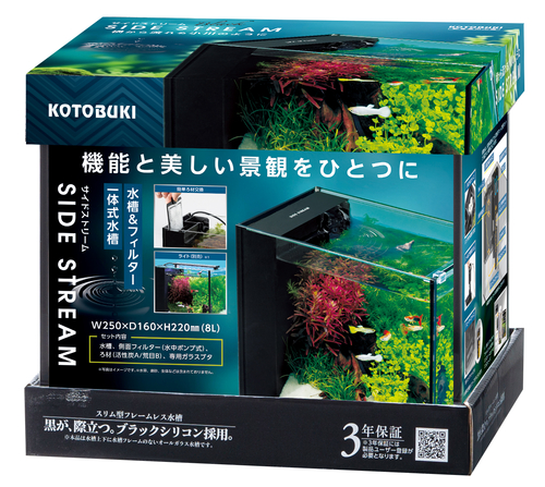 機能と美しい景観をひとつにスリムな一体式水槽・5㎜ガラス使用(ブラックシリコン)・左側面スモークガラス・側面フィルター取り外し可能・ヒータースペースを設けることでフィルター内にヒーター設置可能(別売:コンパクトオートシリーズ推奨)・ろ材:F1/F2用活性炭マットA F1/F2用荒目マットB・第2ろ材スペースには別売りのリングろ材も設置可能