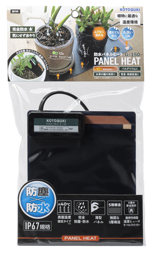 冬の時期や夜間の気温低下から植物を守り、根の周辺の冷え込みを防ぐことで、成長の停滞を回避します。また、植物の発根管理における最適な温度を保ち、根の働きをサポートします。◎植物・育苗用ヒーターIP67規格 防塵・防水仕様■表面温度固定タイプ:約40℃※当社製品「ヒートコントロールHC-200」(電圧調整機器)を使用する事で温度の出力を抑制する事も可能です。薄型パネル強固な5層構造3重の安全設計:難燃性樹脂/温度ヒューズ/サーマルプロテクター■消費電力:6W■発熱部有効寸法:155×160㎜◯水草の種の発芽に◯育苗・発根促進に◯パルダリウムに濡れても安心!完全防水!丸洗いOK!!