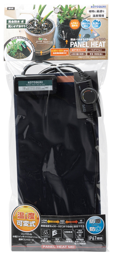 冬の時期や夜間の気温低下から植物を守り、根の周辺の冷え込みを防ぐことで、成長の停滞を回避します。また、植物の発根管理における最適な温度を保ち、根の働きをサポートします。◎植物・育苗用ヒーターIP67規格 防塵・防水仕様■表面温度可変式タイプ:約30〜55℃コンパクトな中間スイッチ(マイクロダイヤル)で簡単コントロール。※使用環境により高温になりすぎる場合や、より細かい温度設定を必要とする場合には別途サーモスタット(ヒュドラヒートHT-330XD)を併用することも可能です。(ヒートコントロールの様な電圧調整機器は接続することは出来ません。)薄型パネル強固な5層構造3重の安全設計:耐熱樹脂/温度ヒューズ/電子回路制御■消費電力:24W■発熱部有効寸法:305×160㎜■ヒーター部:W345×D160×H15(制御部)㎜ コード長180㎝中間スイッチ:W60×D36×H22(制御部)㎜◯水草の種の発芽に◯育苗・発根促進に◯パルダリウムに濡れても安心!完全防水!丸洗いOK!!