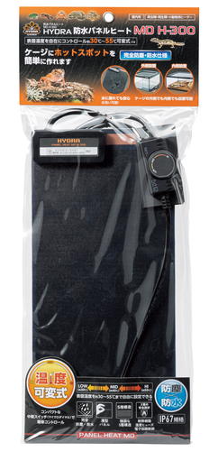 ケージにホットスポットを作るケージの外側でも内側でも設置可能です。※安全を守るため、噛みつくことが予想される生体はケージの外から温めてください。◎爬虫類・両生類・小動物用ヒーター表面温度を自在にコントロール約30℃〜55℃可変式■消費電力:24W■発熱部有効寸法:305×160㎜■ヒーター部:W345×D160×H15(制御部)㎜ コード長180㎝中間スイッチ:W60×D36×H22(制御部)㎜●水に濡れても安心の防塵・防水仕様(IP67規格)●薄型仕様なのに強固な5層構造を実現●ヒーター本体は難燃性硬質樹脂(UL規格V-0グレード)を採用●温度ヒューズ+電子回路制御の安全設計●低消費電力で省エネ濡れても安心!完全防水!丸洗いOK!!