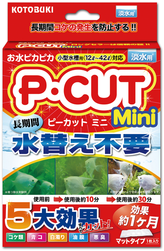 ピーカットシリーズ小型水槽用効きめは短時間で表れ、効果は長期間持続します。・淡水用古くから亜鉛、銀などには防藻性、抗菌性があると言われています。ピーカット中の酸化亜鉛ウィスカ及び銀化合物が水中で極微量徐々に溶け出し、緑藻類の成長を抑制します。また、ピーカット中の青コ除去成分は青コを互いに結合させ、粒子を大きくろ過材で除去しやすくします。(通常、青コは粒子が細かいため通常のろ過材では除去できません)※青コを殺すのではなく、生きたままマットに蓄積しますので安全です。効果は水質・環境により異なりますが、下記の通りです。・青コ・白濁り・油膜・悪臭の除去効果:30〜60分程度(但し効果は1回限り)・緑藻類の発生抑制効果:マットタイプ1枚/約1ヶ月使用目安小型水槽用(12〜42L):1枚主成分:アルミナ/酸化亜鉛/銀化合物/リン酸カルシウム