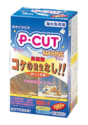 コケの発生なし!!水槽に入れるだけで持続効果約2ヶ月間。・海水魚用・コケ類をカット・油膜をカット・悪臭をカット海水魚専用に開発されたP・CUTです。コケの栄養分とされるリン、窒素などを除去し、コケ類の成長を抑制します。また、油膜や微粒子に近い汚れなどを互いに結合させ、粒子を大きくしてろ過材で除去しやすくします。効果の目安としては以下の通りです。・コケ抑制効果:約2ヶ月間・油膜除去効果:30〜60分程度(但し効果は1回限りです)使用目安約50〜60L:1袋 約150L:3袋 約200L:4袋